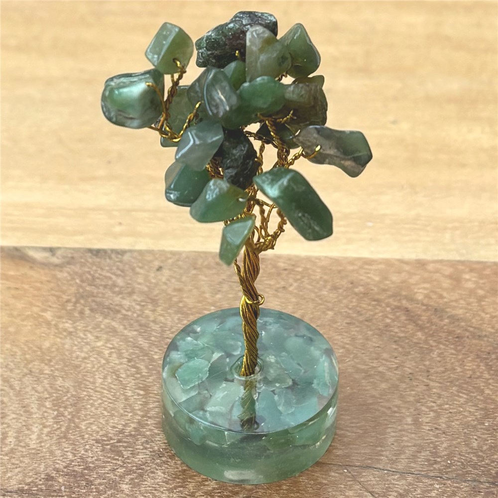 Groene aventurijn is een zachte, harmoniserende edelsteen die staat voor groei, optimisme en emotionele balans. Deze steen helpt om oude patronen los te laten en met meer vertrouwen vooruit te kijken. Groene aventurijn wordt vaak gezien als een steen die kansen aantrekt en ondersteuning biedt bij nieuwe begin momenten, persoonlijke ontwikkeling en innerlijke rust. Een groene aventurijn boompje is bijzonder geschikt voor plekken waar ontspanning, herstel en positieve energie gewenst zijn, zoals de woonkamer, werkplek of praktijkruimte. Sterrenbeelden. Groene aventurijn past goed bij: - Stier: ondersteunt stabiliteit en groei - Maagd: helpt bij herstel en innerlijke rust - Weegschaal: bevordert harmonie en emotionele balans Ook bij andere sterrenbeelden kan groene aventurijn als prettig en ondersteunend worden ervaren. Chakra’s. Groene aventurijn werkt voornamelijk op: - Hartchakra: balans, heling en emotionele rust Hierdoor helpt deze steen bij het openen van het hart en het herstellen van innerlijk evenwicht. Reinigen en opladen. Groene aventurijn neemt energie op en mag daarom regelmatig gereinigd worden. Aanbevolen methode: - Seleniet: leg het boompje enkele uren tot een nacht op of naast seleniet Andere zachte reinigingsmethoden: - Rook van salie of palo santo - Maanlicht Let op: langdurig zonlicht kan de kleur beïnvloeden. Reinigen met water liever niet, zeker niet voor langere tijd. GEVAAR: Omdat dit boompje kleine onderdelen bevat, buiten bereik van dieren en kinderen houden!