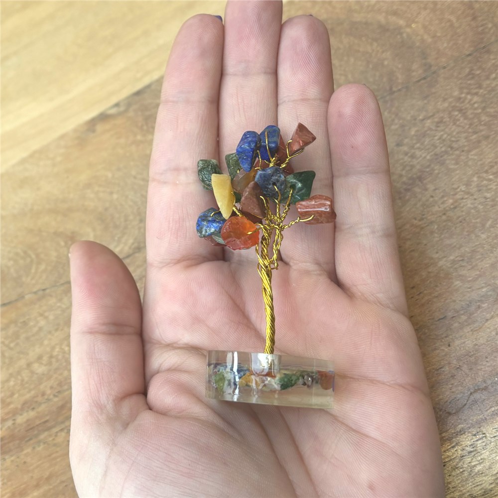 Chakra’s zijn energiecentra in het lichaam die invloed hebben op het fysieke, emotionele en energetische welzijn. Wanneer chakra’s in balans zijn, kan energie vrij doorstromen. Door bewust met chakra’s en edelstenen te werken, kan ondersteuning worden geboden bij innerlijke balans en bewustwording. Wortelchakra (1e chakra): Het wortelchakra staat voor veiligheid, stabiliteit en aarding. Dit chakra helpt om je stevig en gegrond te voelen en ondersteunt basisvertrouwen en lichamelijke energie. Past goed bij sterrenbeelden: Stier, Maagd, Steenbok Sacraal chakra (2e chakra): Het sacraal chakra is verbonden met emoties, creativiteit en levenslust. Het ondersteunt het ervaren en uiten van gevoelens en helpt bij flow en plezier. Past goed bij sterrenbeelden: Kreeft, Schorpioen, Vissen Zonnevlechtchakra (3e chakra): Het zonnevlechtchakra staat voor persoonlijke kracht, wilskracht en zelfvertrouwen. Dit chakra ondersteunt het maken van keuzes en het versterken van eigen energie. Past goed bij sterrenbeelden: Ram, Leeuw, Boogschutter Hartchakra (4e chakra): Het hartchakra draait om liefde, verbinding en compassie. Het helpt bij het geven en ontvangen van liefde en bij emotionele balans. Past goed bij sterrenbeelden: Stier, Weegschaal, Kreeft Keelchakra (5e chakra): Het keelchakra is verbonden met communicatie en zelfexpressie. Dit chakra ondersteunt het spreken van de eigen waarheid. Past goed bij sterrenbeelden: Tweelingen, Weegschaal, Waterman Voorhoofdchakra / derde oog (6e chakra): Het voorhoofdchakra staat voor intuïtie, inzicht en bewustzijn. Het helpt bij helder waarnemen en vertrouwen op innerlijke wijsheid. Past goed bij sterrenbeelden: Vissen, Schorpioen, Boogschutter Kruinchakra (7e chakra): Het kruinchakra staat voor spiritualiteit en verbinding met een groter geheel. Dit chakra ondersteunt bewustwording en innerlijke rust. Past goed bij sterrenbeelden: Waterman, Vissen, Boogschutter Opladen van edelstenen. Edelstenen nemen energie op en mogen daarom regelmatig opgeladen worden zodat hun werking behouden blijft. Aanbevolen methode: - Seleniet: leg de edelsteen of het edelsteen boompje enkele uren tot een nacht op of naast seleniet. Seleniet reinigt en laadt tegelijk op en hoeft zelf niet gereinigd te worden. Andere zachte manieren van opladen: - Maanlicht - Rook van salie of palo santo Let op: opladen met water wordt afgeraden, zeker bij edelstenen die verwerkt zijn in boompjes met ijzerdraad. Vermijd langdurige blootstelling aan fel zonlicht. GEVAAR: Omdat dit boompje kleine onderdelen bevat, buiten bereik van dieren en kinderen houden!
