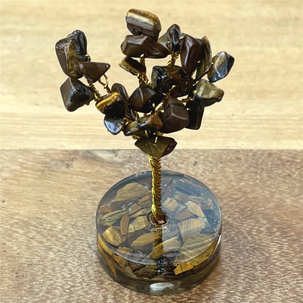 Tijgeroog is een beschermende en versterkende edelsteen die helpt om moed, zelfvertrouwen en innerlijke kracht te vergroten. Deze steen ondersteunt bij het maken van keuzes en helpt om balans te vinden tussen denken en voelen. Tijgeroog werkt aardend en beschermend en wordt vaak gebruikt om negatieve invloeden op afstand te houden. Een tijgeroog boompje is zeer geschikt voor plekken waar focus, daadkracht en bescherming gewenst zijn, zoals een werkplek of ruimte waar veel activiteit is. Sterrenbeelden. Tijgeroog past vooral goed bij: - Leeuw: versterkt zelfvertrouwen en daadkracht - Tweelingen: helpt bij focus en besluitvaardigheid - Maagd: ondersteunt overzicht en innerlijke rust Ook bij andere sterrenbeelden kan tijgeroog als ondersteunend en beschermend worden ervaren. Chakra’s. Tijgeroog werkt voornamelijk op: - Zonnevlechtchakra: persoonlijke kracht, wilskracht en zelfvertrouwen - Wortelchakra: aarding en stabiliteit Hierdoor helpt deze steen om stevig te staan en met vertrouwen te handelen. Opladen. Tijgeroog neemt energie op en mag daarom regelmatig opgeladen worden. Aanbevolen methode: - Seleniet: leg het tijgeroog boompje enkele uren tot een nacht op of naast seleniet. Dit reinigt en laadt de steen tegelijkertijd op. Andere zachte manieren van opladen: - Maanlicht - Rook van salie of palo santo Let op: opladen met water wordt afgeraden, zeker bij boompjes die met ijzerdraad zijn gemaakt. Vermijd langdurige blootstelling aan fel zonlicht. GEVAAR: Omdat dit boompje kleine onderdelen bevat, buiten bereik van dieren en kinderen houden!