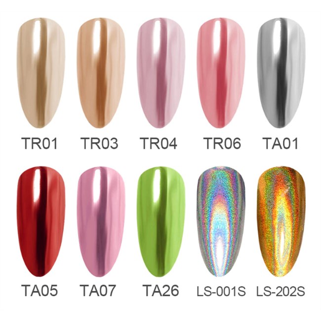 Holographic poeder in een pen. Geen gedoe meer met potjes :) Met deze poeder maak je mooie chrome nagels. 10 verschillende kleuren waaruit je kunt kiezen.