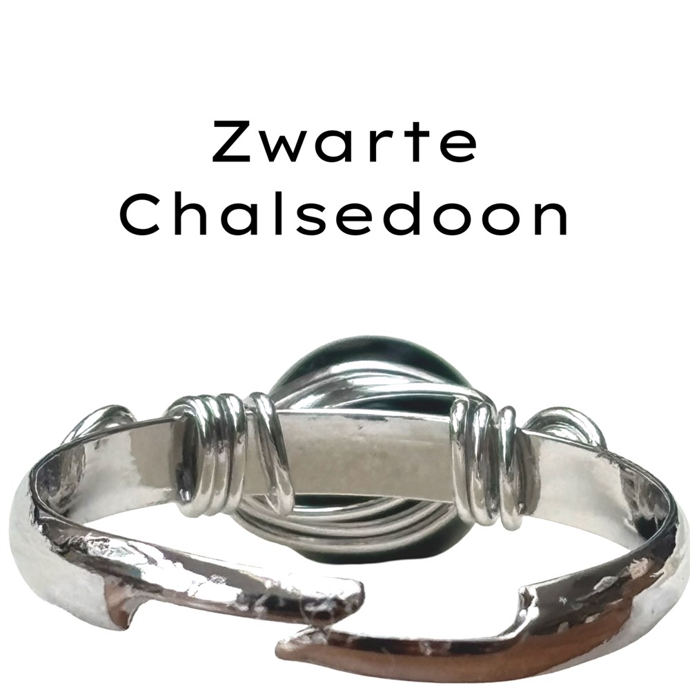 Zwarte chalcedoon one-size ring: diepe kracht en elegante eenvoud. Deze stijlvolle zwarte chalcedoon ring past altijd dankzij de one-size pasvorm. De steen heeft een diepe, matte tot subtiel glanzende uitstraling die elke look een krachtige, mysterieuze touch geeft. Betekenis van zwarte chalcedoon: Zwarte chalcedoon staat bekend als een steen van bescherming, stabiliteit en innerlijke kracht. Hij helpt je om negativiteit los te laten, je gedachten te ordenen en met vertrouwen je eigen pad te volgen. Een fijne steen voor wie rust, stevigheid en helderheid zoekt. Uniek natuurproduct: Elke zwarte chalcedoonsteen is anders. Kleur, vorm en tekening kunnen variëren. Dat maakt elke ring uniek, net als jij. Kaartje met betekenis: Bij elke ring ontvang je een mooi kaartje met een symbolische tekst die spreekt vanuit de steen. Een kleine, persoonlijke boodschap die de betekenis van zwarte chalcedoon nog bijzonderder maakt. Perfect als cadeau: Een betekenisvol geschenk voor iemand die je kracht wilt meegeven… of een mooi momentje van zelfzorg voor jezelf natuurlijk.