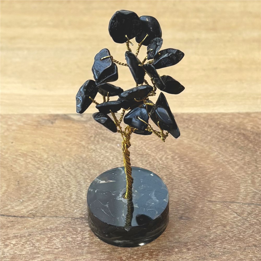 Zwarte agaat is een sterk aardende en beschermende edelsteen die helpt om rust, stabiliteit en innerlijke kracht te bevorderen. Deze steen ondersteunt bij het loslaten van spanning en negatieve invloeden en helpt om emotioneel en energetisch in balans te blijven. Zwarte agaat geeft een gevoel van veiligheid en standvastigheid, vooral in periodes van stress of verandering. Een zwarte agaat boompje is zeer geschikt voor plekken waar bescherming, rust en aarding gewenst zijn, zoals de woonkamer, werkplek of praktijkruimte. Sterrenbeelden. Zwarte agaat past vooral goed bij: - Steenbok: ondersteunt stabiliteit en doorzettingsvermogen - Schorpioen: helpt bij bescherming en emotionele balans - Stier: bevordert aarding en innerlijke rust Ook bij andere sterrenbeelden kan zwarte agaat als ondersteunend en beschermend worden ervaren. Chakra’s. Zwarte agaat werkt voornamelijk op: - Wortelchakra: aarding, veiligheid en stabiliteit Hierdoor helpt deze steen om energie te verankeren en meer rust en stevigheid te ervaren. Opladen. Zwarte agaat neemt energie op en mag daarom regelmatig opgeladen worden. Aanbevolen methode: - Seleniet: leg het zwarte agaat boompje enkele uren tot een nacht op of naast seleniet. Dit reinigt en laadt de steen tegelijkertijd op. Andere zachte manieren van opladen: - Maanlicht - Rook van salie of palo santo Let op: opladen met water wordt afgeraden, zeker bij boompjes die met ijzerdraad zijn gemaakt. Vermijd langdurige blootstelling aan fel zonlicht. GEVAAR: Omdat dit boompje kleine onderdelen bevat, buiten bereik van dieren en kinderen houden!