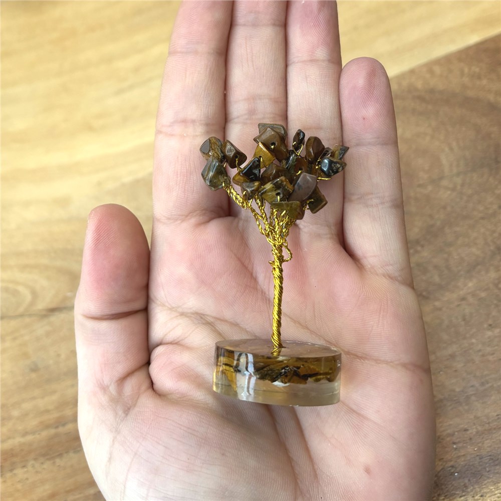 Tijgeroog is een beschermende en versterkende edelsteen die helpt om moed, zelfvertrouwen en innerlijke kracht te vergroten. Deze steen ondersteunt bij het maken van keuzes en helpt om balans te vinden tussen denken en voelen. Tijgeroog werkt aardend en beschermend en wordt vaak gebruikt om negatieve invloeden op afstand te houden. Een tijgeroog boompje is zeer geschikt voor plekken waar focus, daadkracht en bescherming gewenst zijn, zoals een werkplek of ruimte waar veel activiteit is. Sterrenbeelden. Tijgeroog past vooral goed bij: - Leeuw: versterkt zelfvertrouwen en daadkracht - Tweelingen: helpt bij focus en besluitvaardigheid - Maagd: ondersteunt overzicht en innerlijke rust Ook bij andere sterrenbeelden kan tijgeroog als ondersteunend en beschermend worden ervaren. Chakra’s. Tijgeroog werkt voornamelijk op: - Zonnevlechtchakra: persoonlijke kracht, wilskracht en zelfvertrouwen - Wortelchakra: aarding en stabiliteit Hierdoor helpt deze steen om stevig te staan en met vertrouwen te handelen. Opladen. Tijgeroog neemt energie op en mag daarom regelmatig opgeladen worden. Aanbevolen methode: - Seleniet: leg het tijgeroog boompje enkele uren tot een nacht op of naast seleniet. Dit reinigt en laadt de steen tegelijkertijd op. Andere zachte manieren van opladen: - Maanlicht - Rook van salie of palo santo Let op: opladen met water wordt afgeraden, zeker bij boompjes die met ijzerdraad zijn gemaakt. Vermijd langdurige blootstelling aan fel zonlicht. GEVAAR: Omdat dit boompje kleine onderdelen bevat, buiten bereik van dieren en kinderen houden!